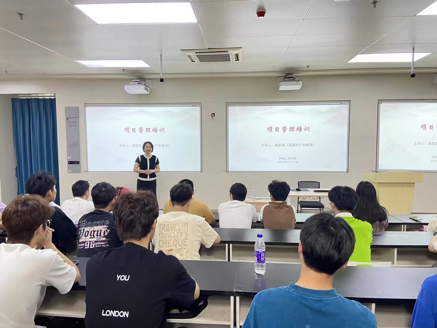 鄭美惠女士此次以安徽省產(chǎn)業(yè)教授的身份,結(jié)合學(xué)院專業(yè)人才培養(yǎng)目標(biāo)和個人實際工作經(jīng)驗,向?qū)W生介紹了項目管理的概念和相關(guān)要素,分析項目本質(zhì)。以實際案例向?qū)W生介紹項目管理過程中的常用工具以及如何提高項目績效。她指出,具備項目管理能力已成為個人職業(yè)發(fā)展的重要資產(chǎn),掌握項目管理技能可以提高工作效率,拓寬職業(yè)發(fā)展道路。在現(xiàn)場問答環(huán)節(jié),就相關(guān)問題與學(xué)生進(jìn)行了交流與互動。